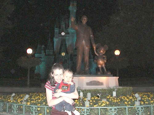 The statue of Walt Disney & Mickey, in front of the